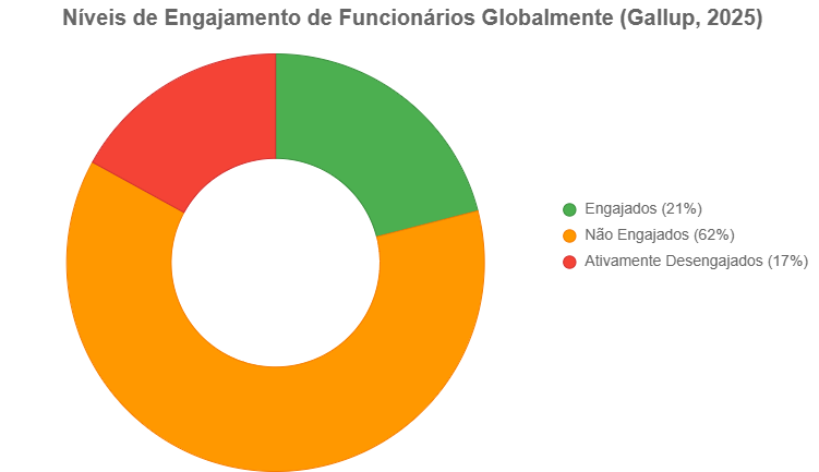 É um ciclo virtuoso: uma cultura forte nutre a liderança, que, por sua vez, a reforça. Tentar crescer em um ambiente de medo ou complacência é receita para estagnação. Veja abaixo como o engajamento de equipes se distribui em 2025 e o papel dominante da liderança em combatê-lo.