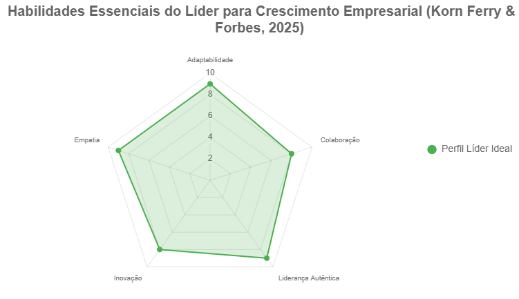 (Legenda: Este radar ilustra scores exemplares (escala 1-10) para líderes de sucesso, enfatizando equilíbrio entre inovação e empatia. Fonte: Tendências de Korn Ferry e Forbes.)